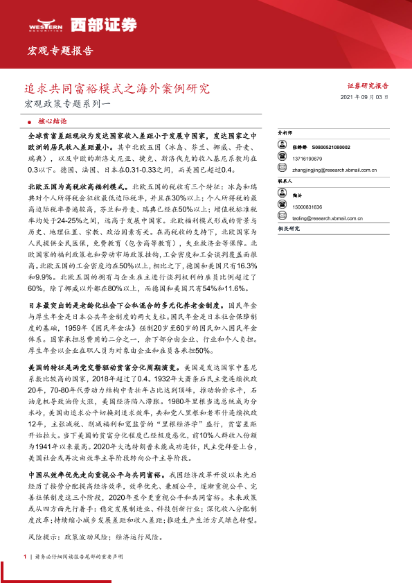 【西部证券】【20210903】宏观政策专题系列一:追求共同富裕模式之海外案例研究-19页