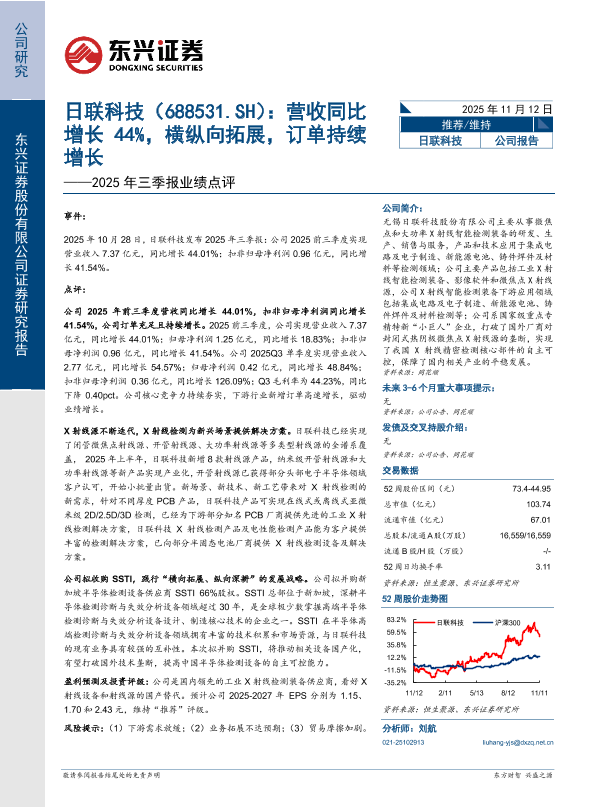 【东兴证券】【202511】日联科技(688531.SH):营收同比增长 44%,横纵向拓展,订单持续增长——2025年三季报业绩点评-7页
