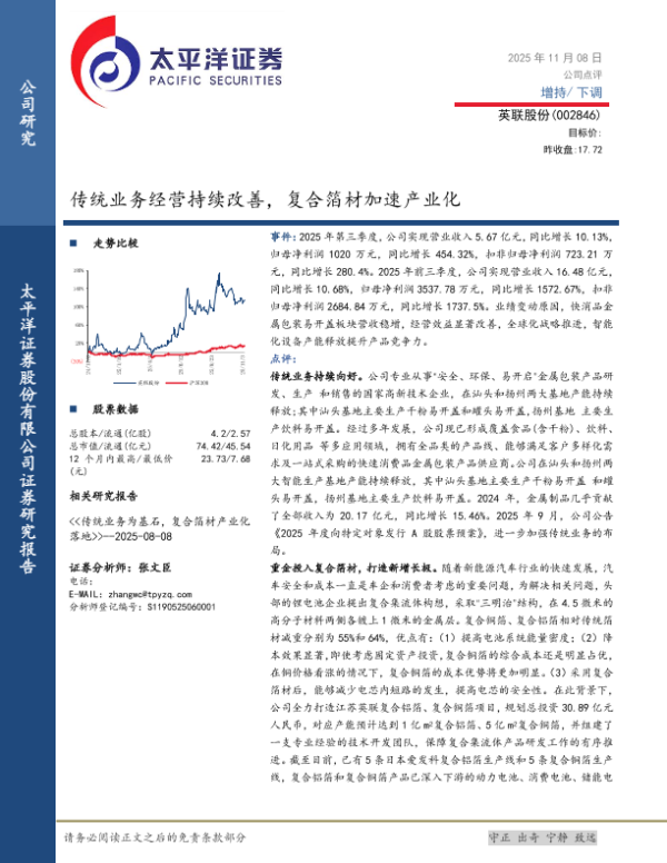 【太平洋证券】【202511】传统业务经营持续改善,复合箔材加速产业化-5页