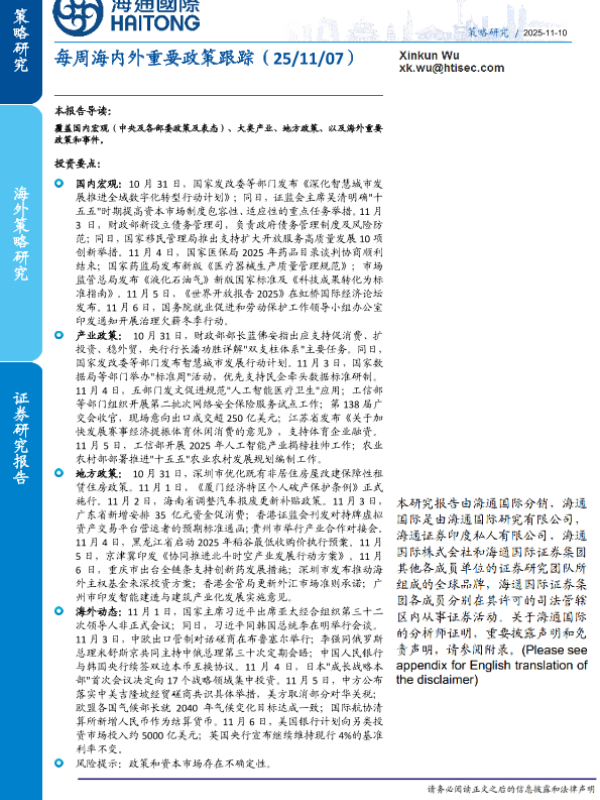 【海通国际】【202511】每周海内外重要政策跟踪(25/11/07)-21页