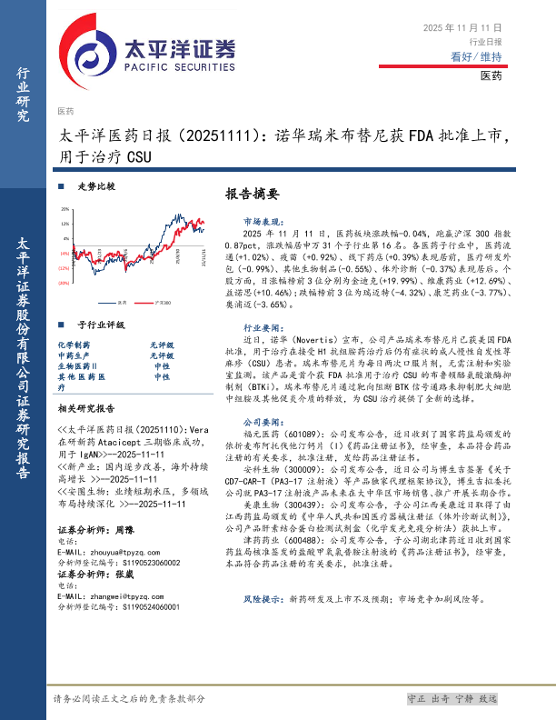 【太平洋证券】【202511】2025-11-12_太平洋_医药日报:诺华瑞米布替尼获FDA批准上市,用于治疗CSU-3页