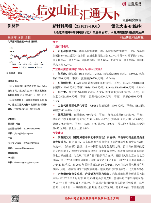 【山西证券】【202511】《碳达峰碳中和的中国行动》白皮书发布,六氟磷酸锂价格强势反弹-23页