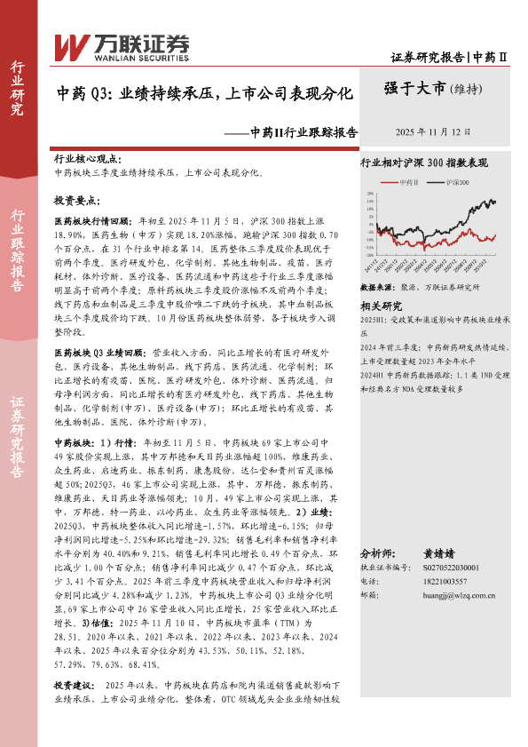 【万联证券】【202511】中药 Q3:业绩持续承压,上市公司表现分化-18页