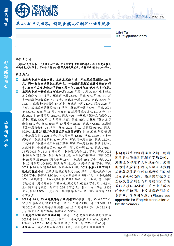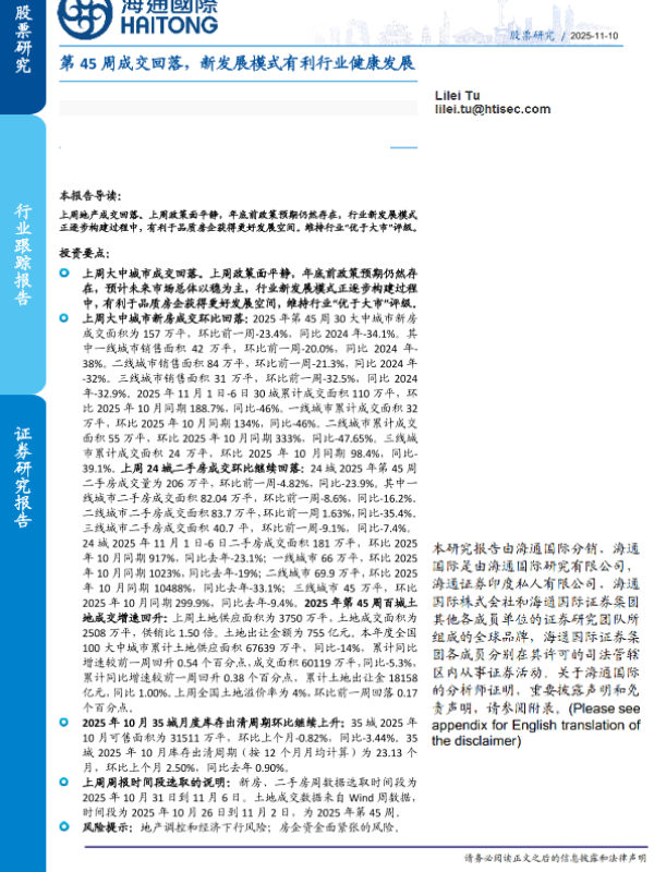 【海通国际】【202511】第45周成交回落,新发展模式有利行业健康发展-11页