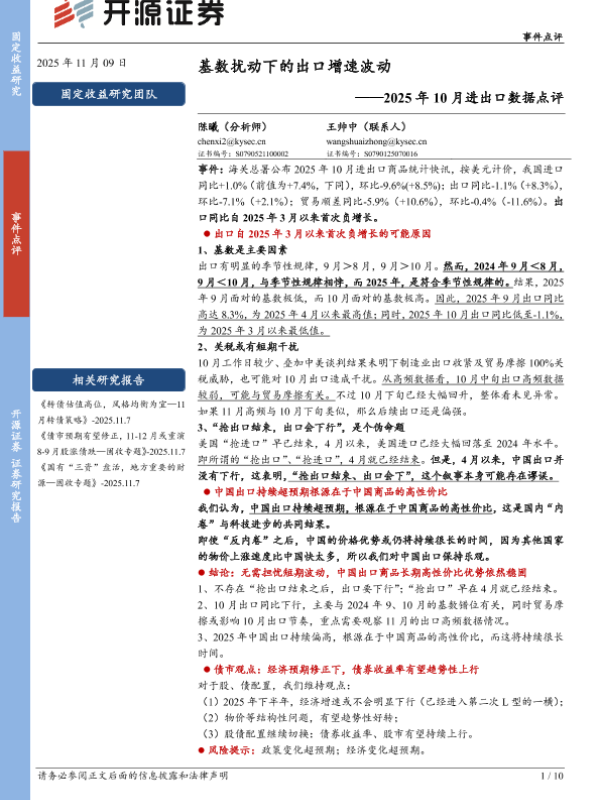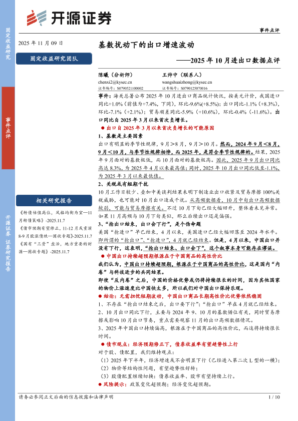 【开源证券】【202511】基数扰动下的出口增速波动——2025年10月进出口数据点评-10页