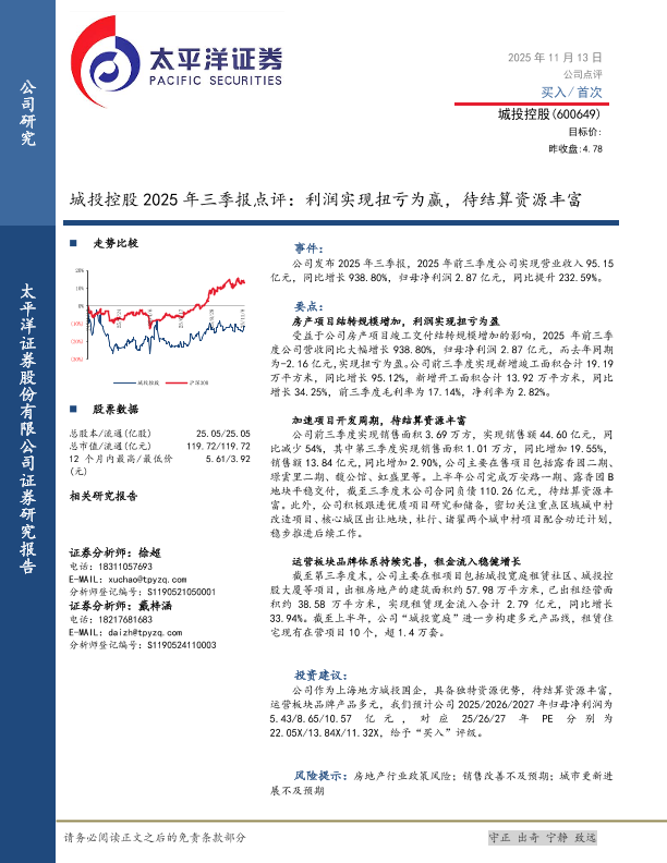 【太平洋证券】【202511】城投控股2025年三季报点评:利润实现扭亏为赢,待结算资源丰富-5页