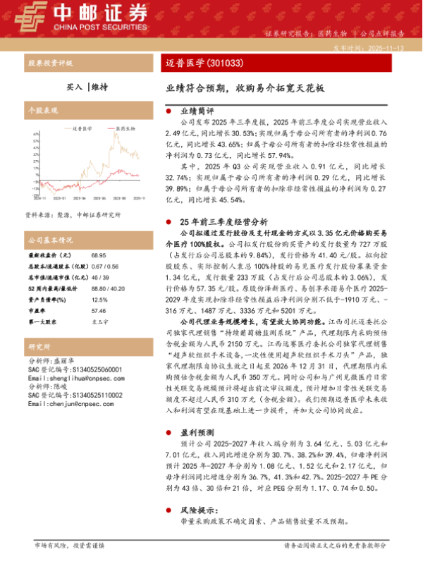 【中邮证券】【202511】业绩符合预期,收购易介拓宽天花板-5页