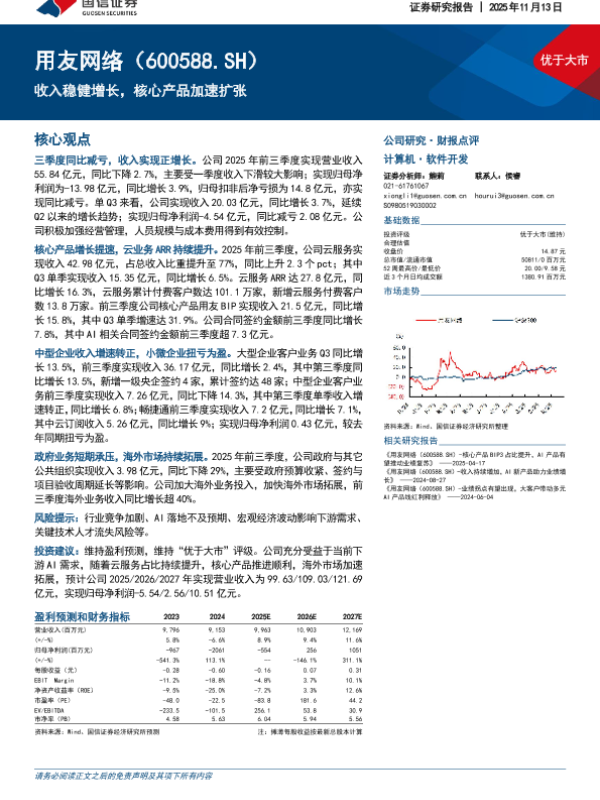 投资评级 用友网络 AI产品 财报点评 云服务