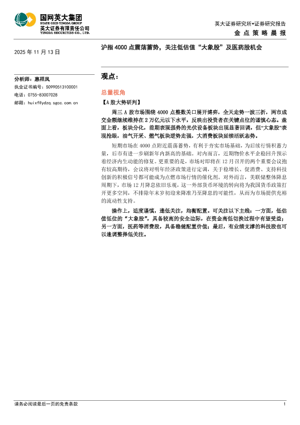 【英大证券】【202511】沪指4000点震荡蓄势,关注低估值“大象股”及医药股机会-4页