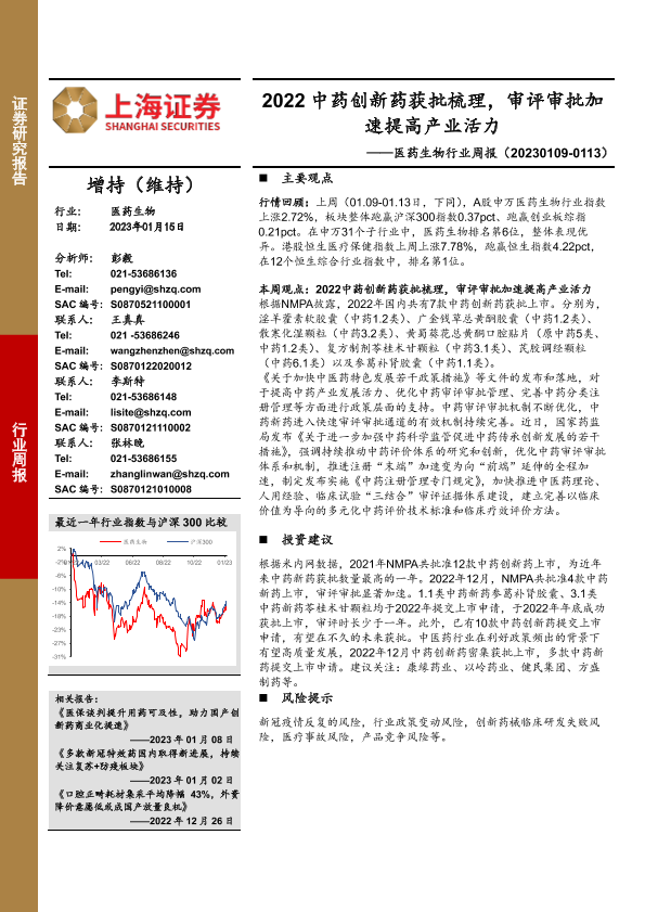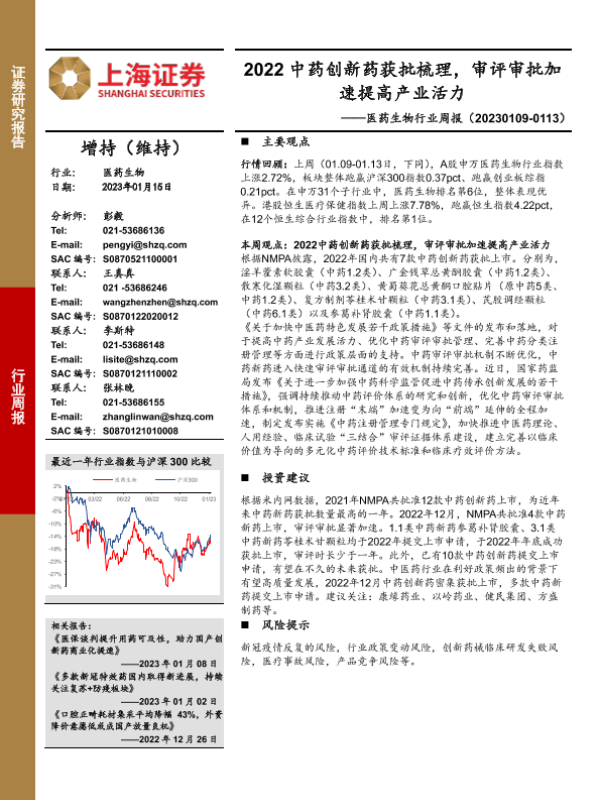 【上海证券】【20230115】医药生物行业周报:2022中药创新药获批梳理,审评审批加速提高产业活力-21页