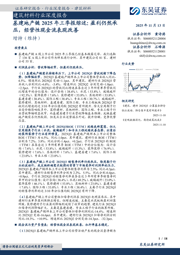 【东吴证券】【202511】建筑材料行业深度报告:基建地产链2025年三季报综述:盈利仍然承压,经营性现金流表现改善-18页