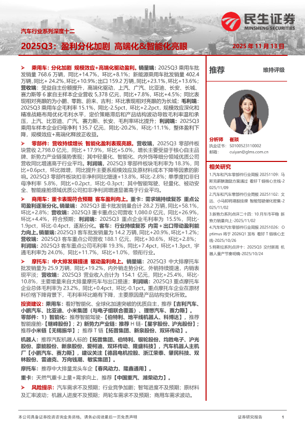 【民生证券】【202511】2025Q3:盈利分化加剧高端化&智能化亮眼-57页