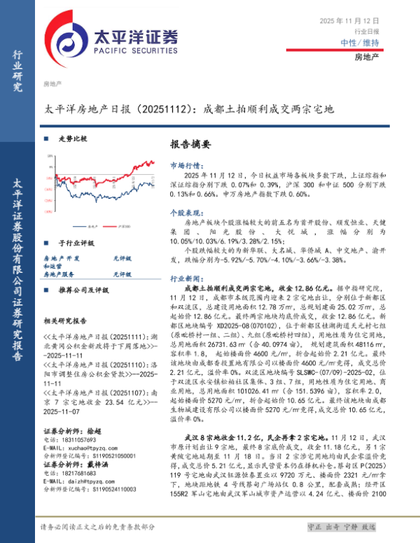 【太平洋证券】【202511】太平洋房地产日报(20251112):成都土拍顺利成交两宗宅地-4页