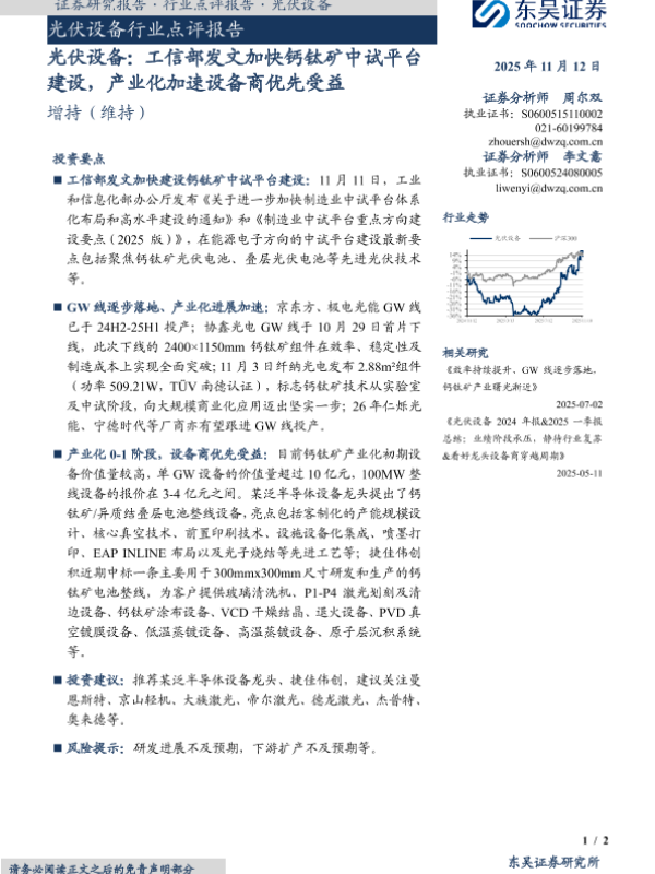 【东吴证券】【202511】光伏设备:工信部发文加快钙钛矿中试平台建设,产业化加速设备商优先受益-2页