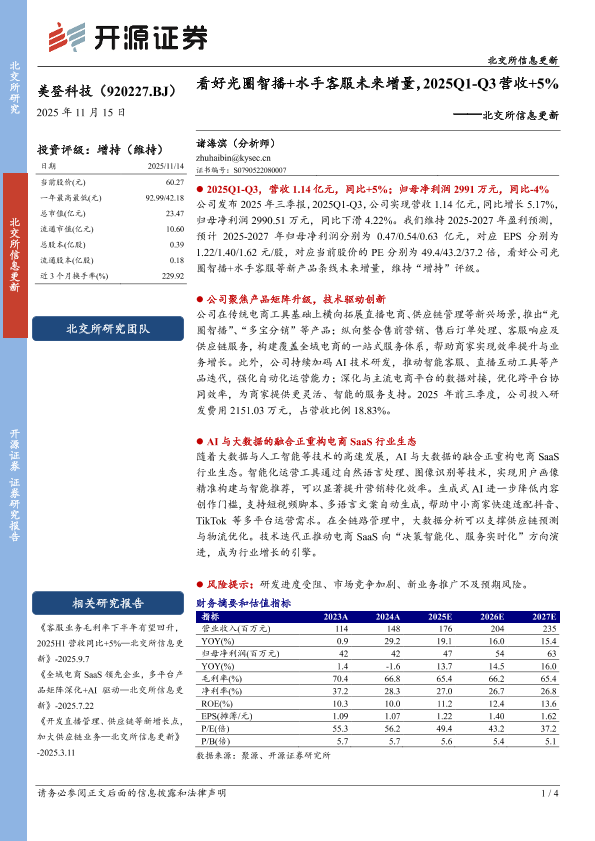 【开源证券】【202511】北交所信息更新:看好光圈智播+水手客服未来增量,2025Q1-Q3营收+5%-4页