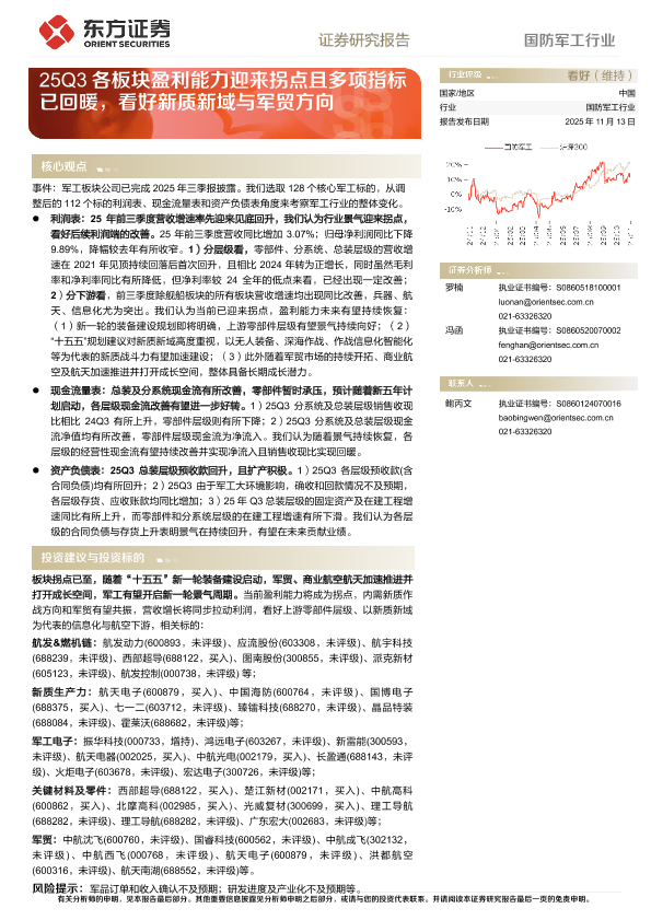 【东方证券】【2025】国防军工行业:25Q3各板块盈利能力迎来拐点且多项指标已回暖,看好新质新域与军贸方向-18页