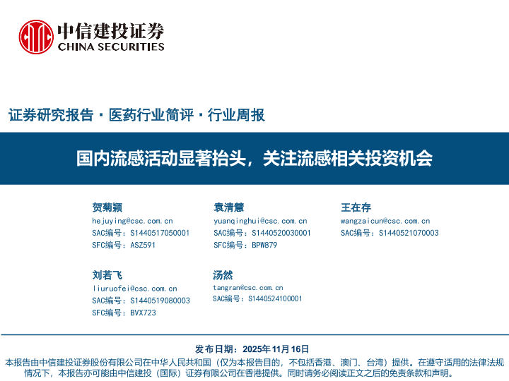 【中信建投证券】【202511】国内流感活动显著抬头,关注流感相关投资机会-20页