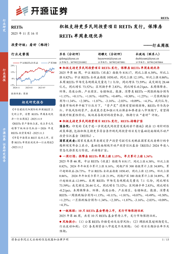 【开源证券】【202511】积极支持更多民间投资项目 REITs发行,保障房 REITs单周表现优异——行业周报-15页
