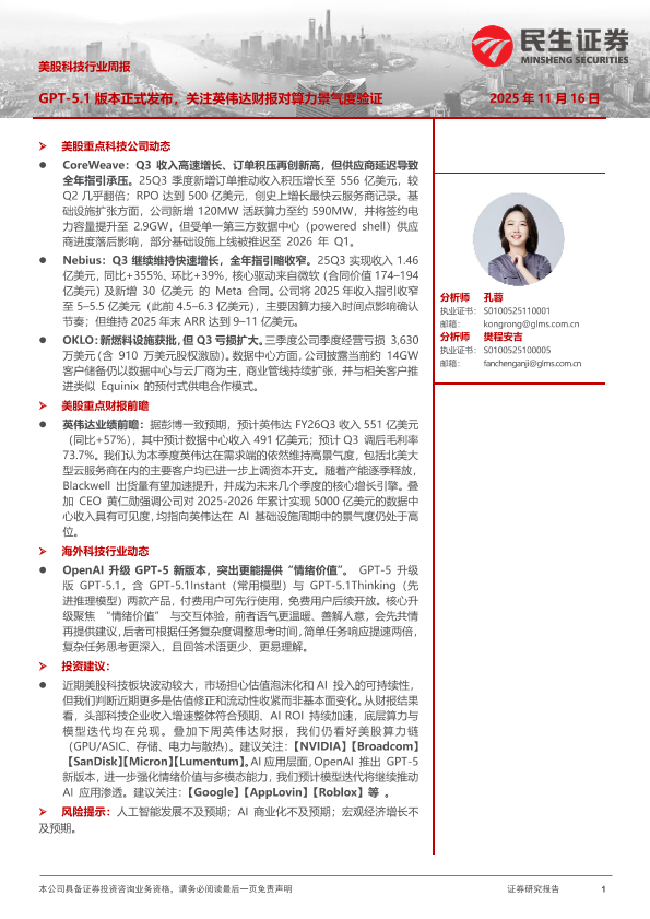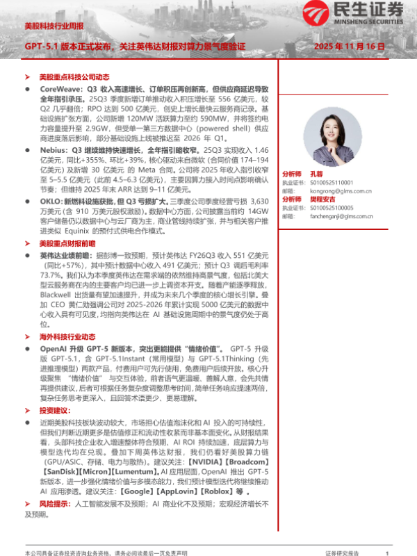 【民生证券】【202511】美股科技行业周报:GPT-5.1版本正式发布,关注英伟达财报对算力景气度验证-8页