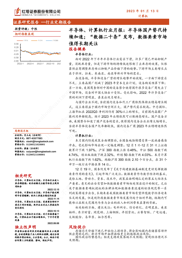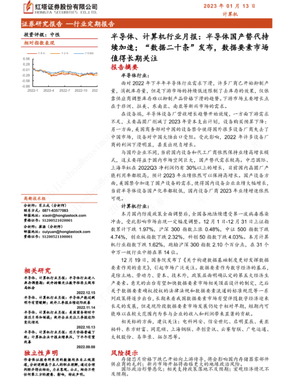 【红塔证券】【20230113】半导体、计算机行业月报:半导体国产替代持续加速;“数据二十条”发布,数据要素市场值得长期关注-18页