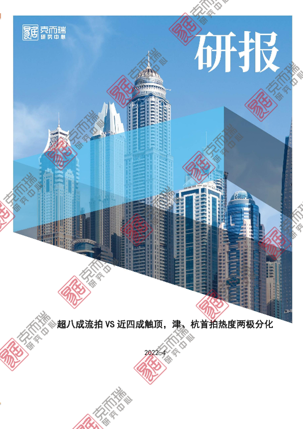 【易居企业集团&克而瑞研究中心】【202204】超八成流拍 VS近四成触顶,津、杭首拍热度两极分化-8页