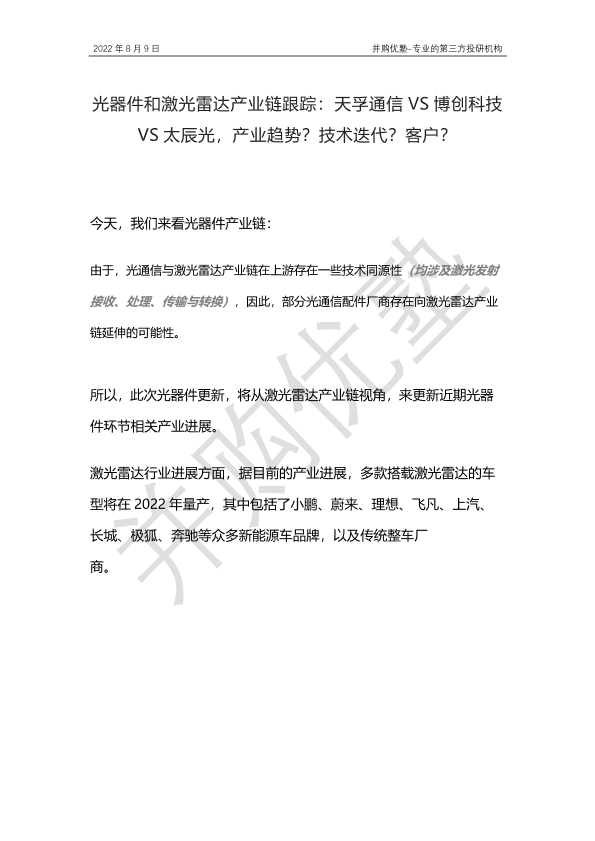 【并购优塾】【202208】光器件和激光雷达产业链跟踪:天孚通信 VS博创科技VS太辰光-25页