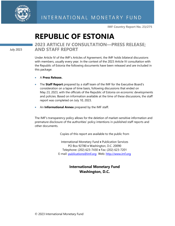 【国际货币基金组织】【202307】REPUBLIC OF ESTONIA 2023 ARTICLE IV CONSULTATION—PRESS RELEASE; AND STAFF REPORT-89页