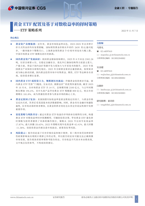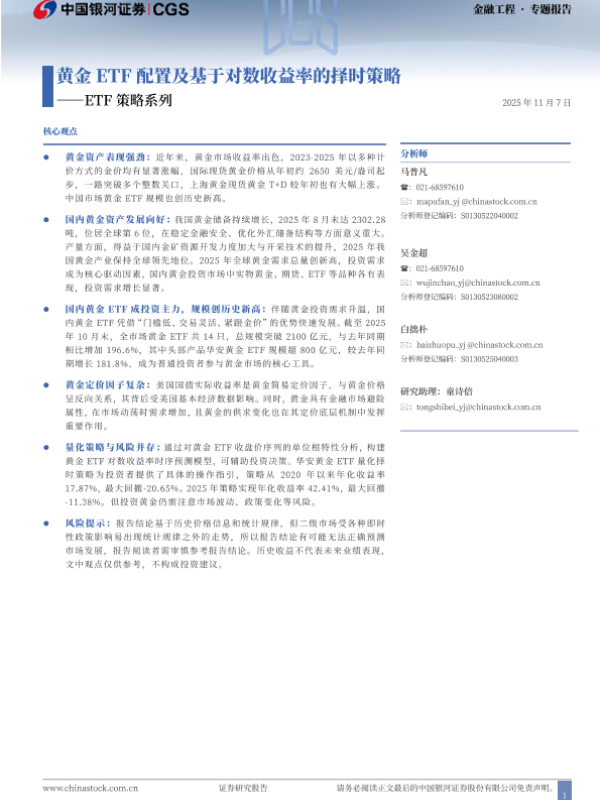 【银河证券】【202511】黄金 ETF配置及基于对数收益率的择时策略-26页