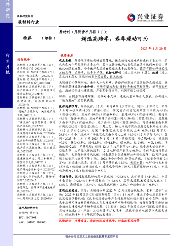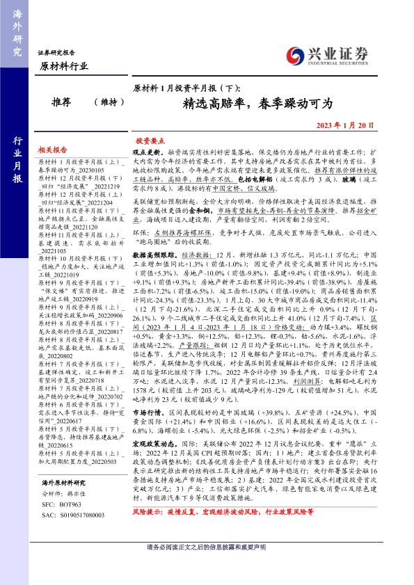 【兴业证券】【20230120】原材料行业原材料1月投资半月报(下):精选高赔率,春季躁动可为-28页