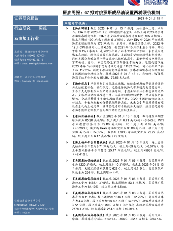 【信达证券】【20230115】原油周报:G7拟对俄罗斯成品油设置两种限价机制-27页