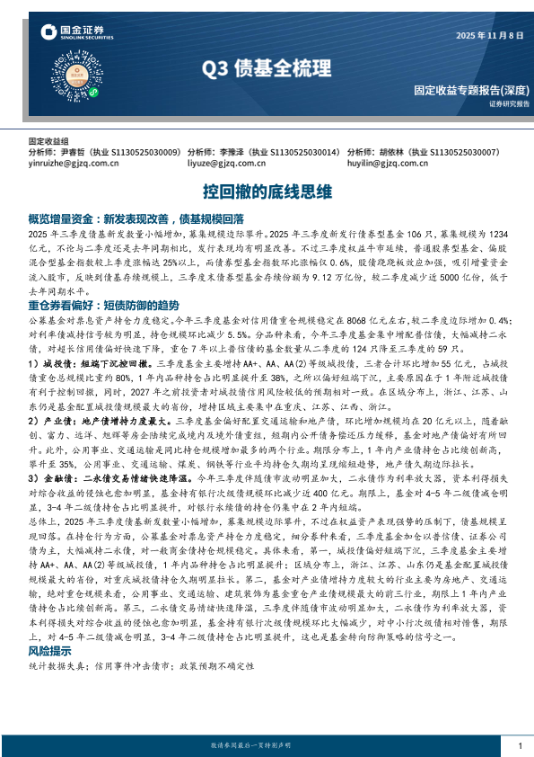 【国金证券】【202509】固定收益专题报告(深度) 2025年三季度债基全梳理_控回撤的底线思维-15页