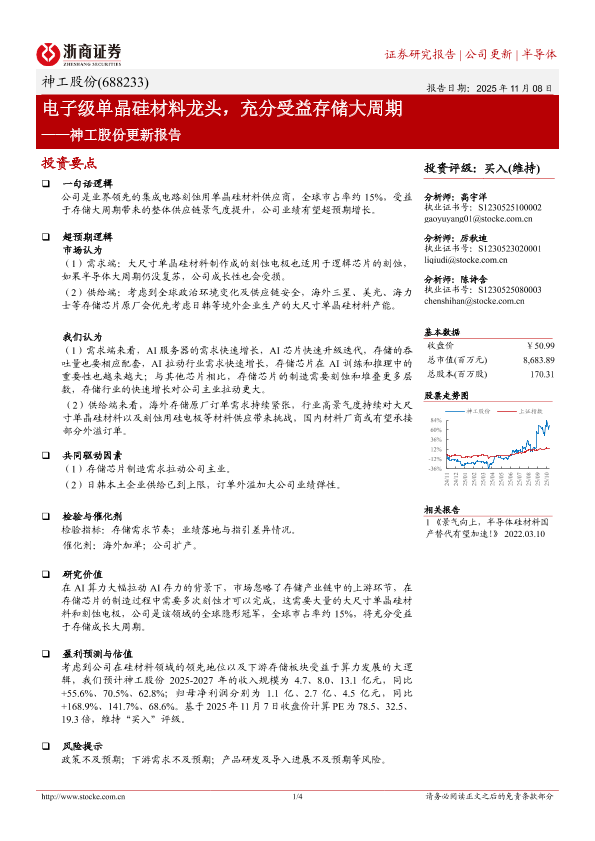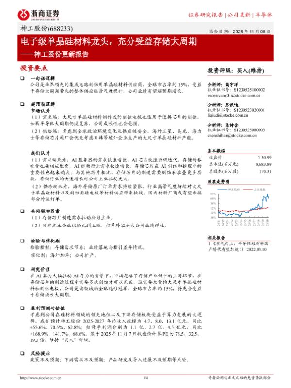 【浙商证券】【202511】电子级单晶硅材料龙头,充分受益存储大周期——神工股份更新报告-4页