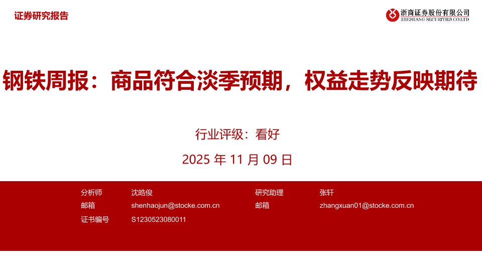 【浙商证券】【202511】钢铁周报:商品符合淡季预期,权益走势反映期待-11页