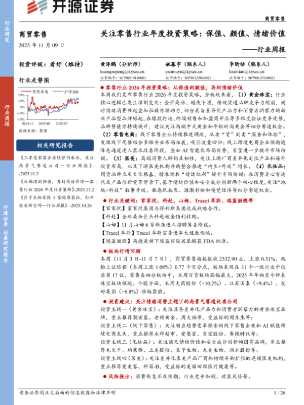 【开源证券】【202511】关注零售行业年度投资策略:保值、颜值、情绪价值——行业周报-26页