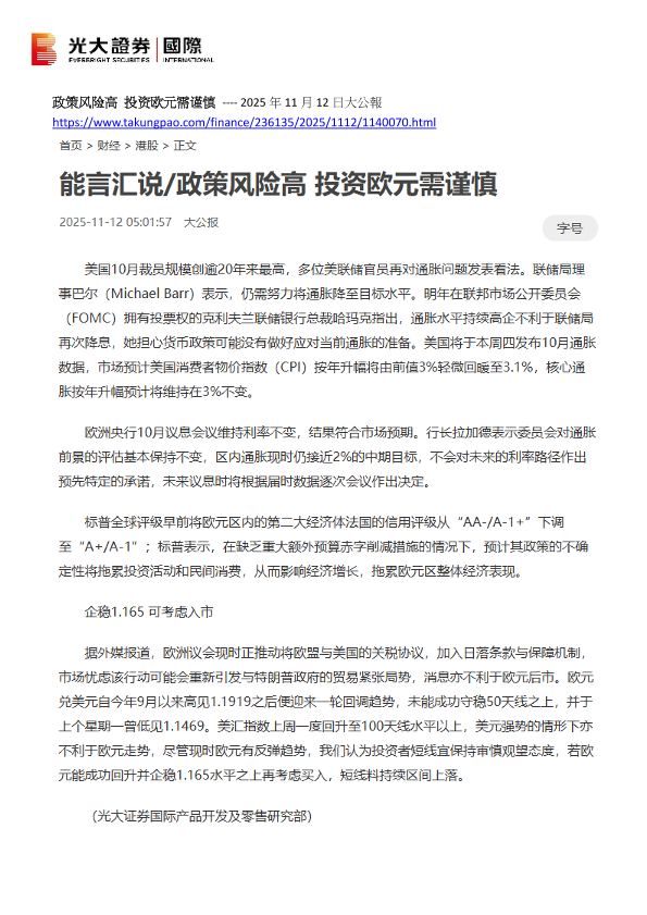 【光大证券(国际)】【202511】政策风险高投资欧元需谨慎-1页