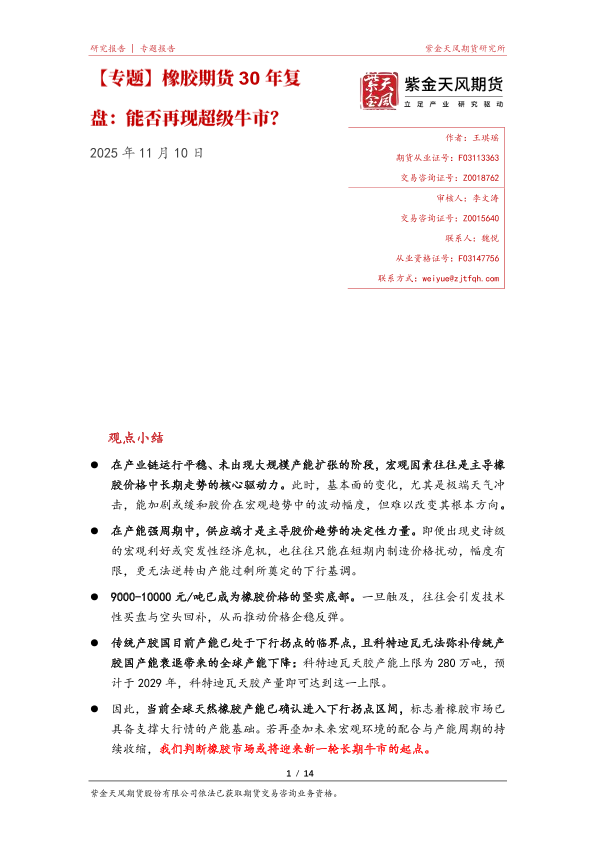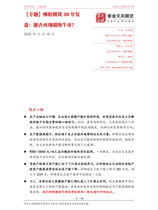 【紫金天风期货】【202511】橡胶期货 30年复盘:能否再现超级牛市?-14页