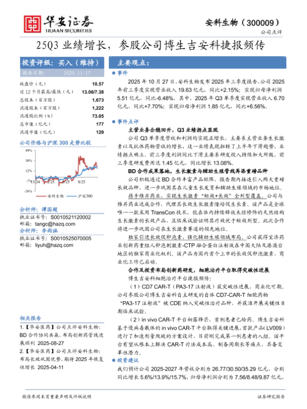 【华安证券】【202511】25Q3业绩增长,参股公司博生吉安科捷报频传-4页