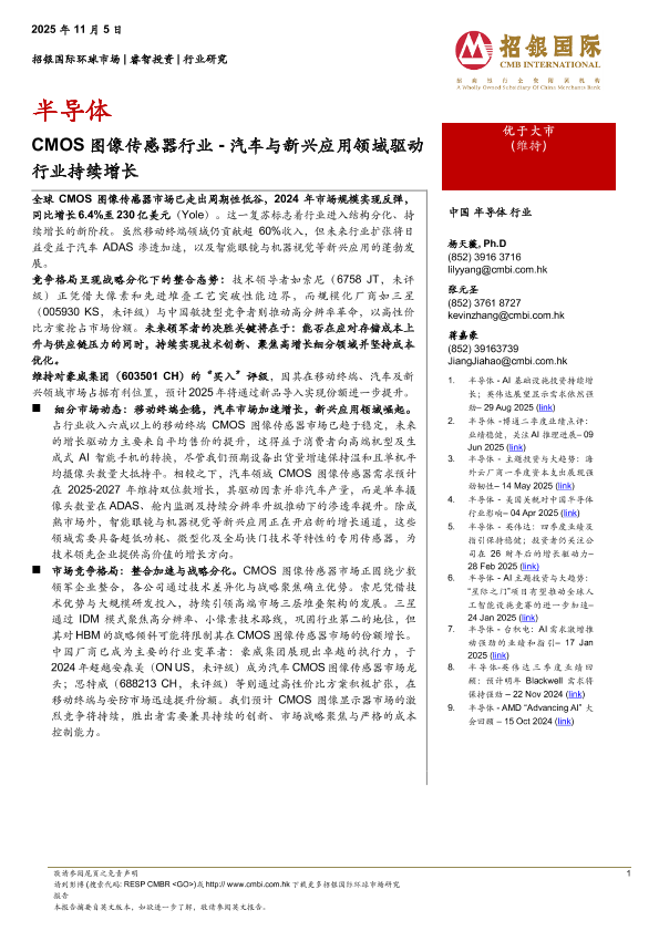 【招银国际环球市场&睿智投资】【202511】半导体- CMOS图像传感器行业 -汽车与新兴应用领域驱动行业持续增长-11页