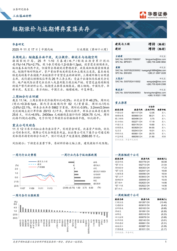 【华泰证券】【202511】工业/基础材料行业周报(第四十六周):短期涨价与远期博弈震荡共存-17页
