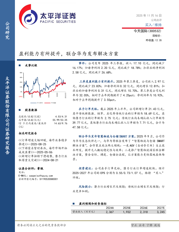 【太平洋证券】【202511】盈利能力有所提升,联合华为发布解决方案-5页