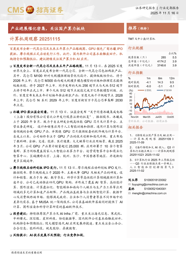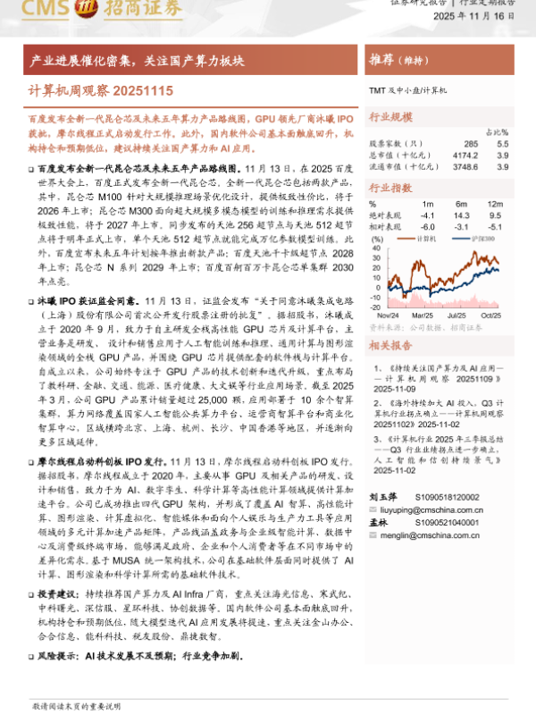 GPU芯片 行业报告 人工智能 国产算力 IPO进展