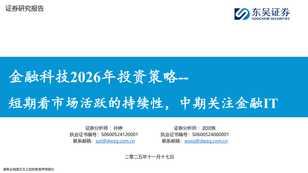 【东吴证券】【202511】金融科技2026年投资策略--短期看市场活跃的持续性,中期关注金融IT-34页
