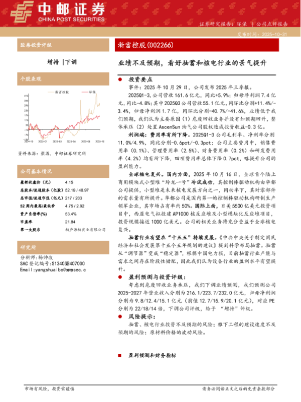 【中邮证券】【202510】业绩不及预期,看好抽蓄和核电行业的景气提升-5页