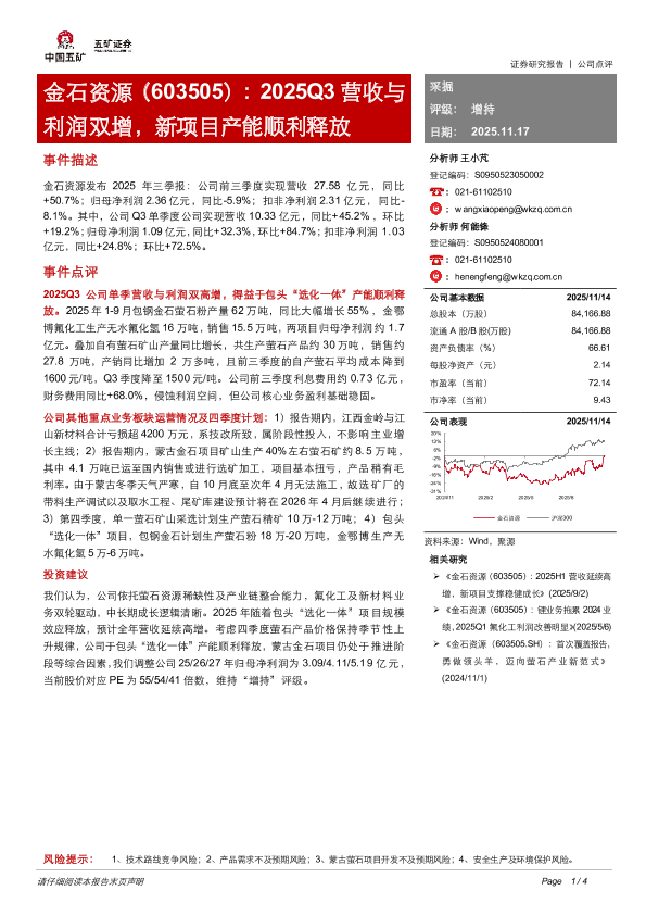 【五矿证券】【202511】金[Table石_Main资]源(603505):2025Q3营收与 利润双增,新项目产能顺利释放-4页