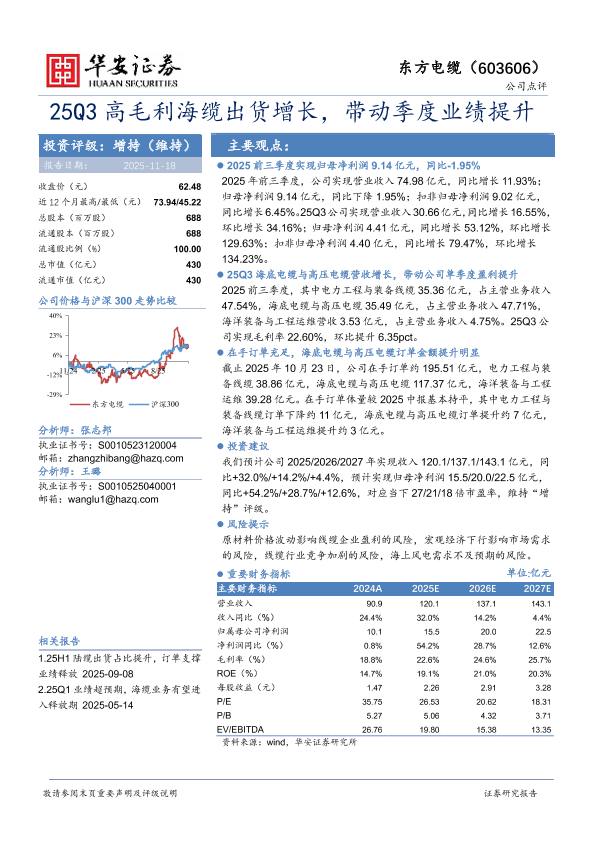【华安证券】【202511】25Q3高毛利海缆出货增长,带动季度业绩提升-3页
