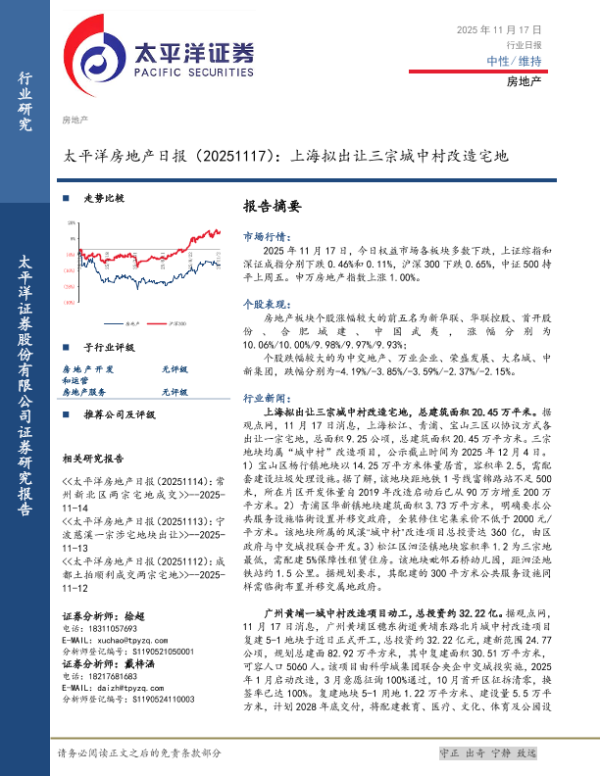【太平洋证券】【202511】房地产日报:上海拟出让三宗城中村改造宅地-4页