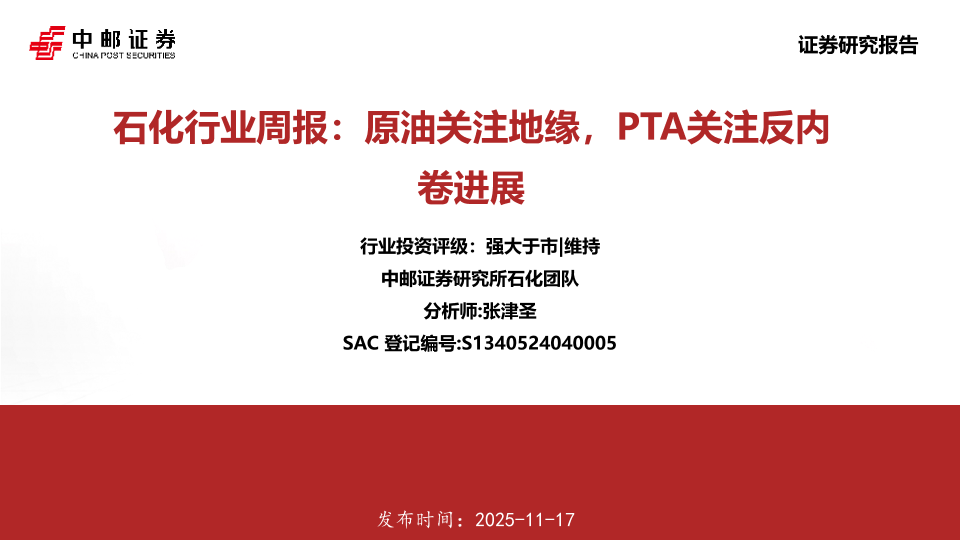 【中邮证券】【202511】石化行业周报:原油关注地缘,PTA关注反内卷进展-16页