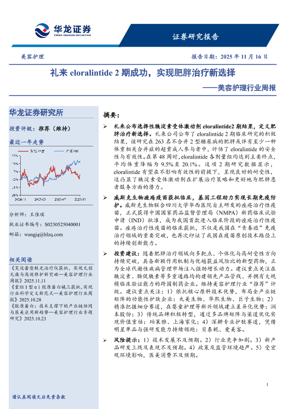 【华龙证券】【202511】美容护理行业周报:礼来eloralintide 2期成功,实现肥胖治疗新选择-10页