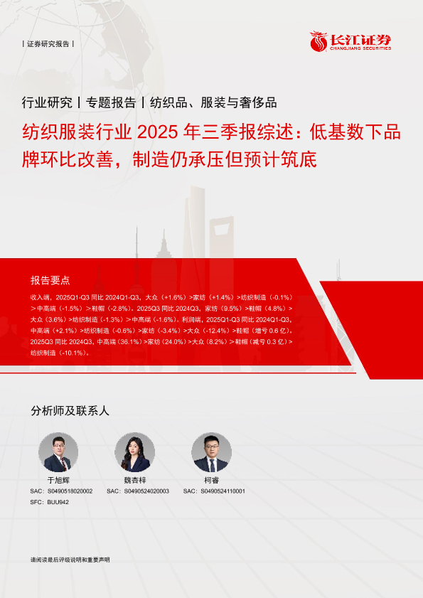 【长江证券】【2025】纺织服装行业2025年三季报综述:低基数下品牌环比改善,制造仍承压但预计筑底-21页