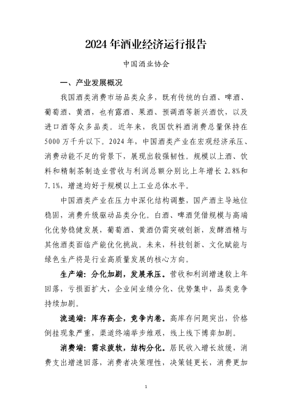 【中国酒业协会】【2024】2024年酒业经济运行报告-10页